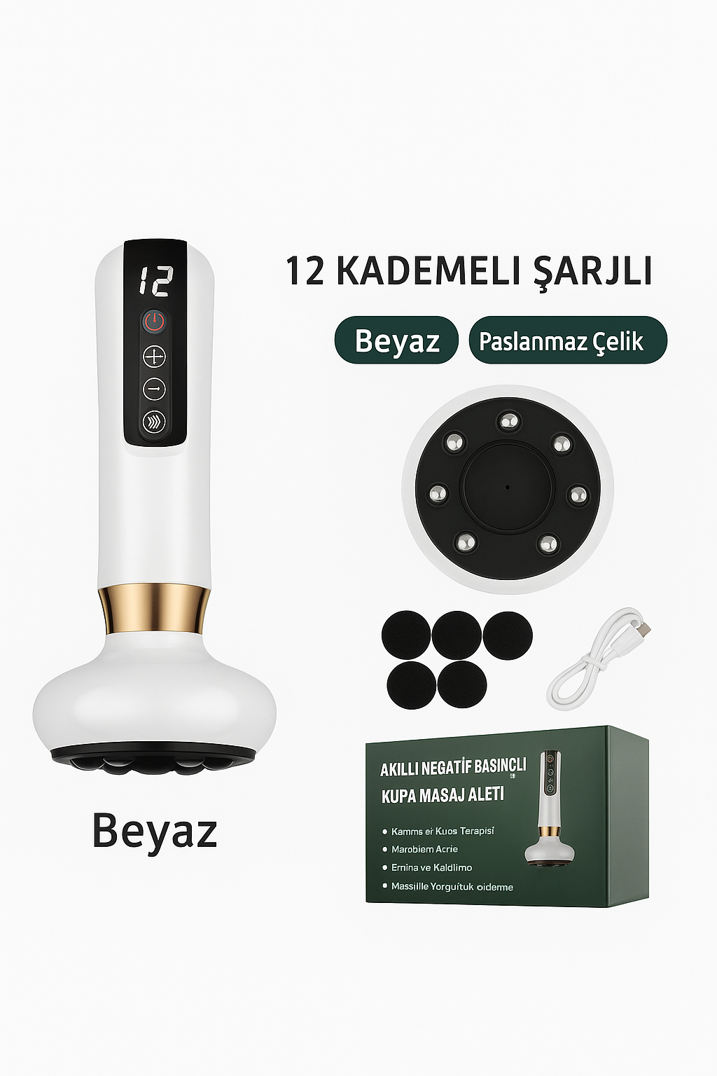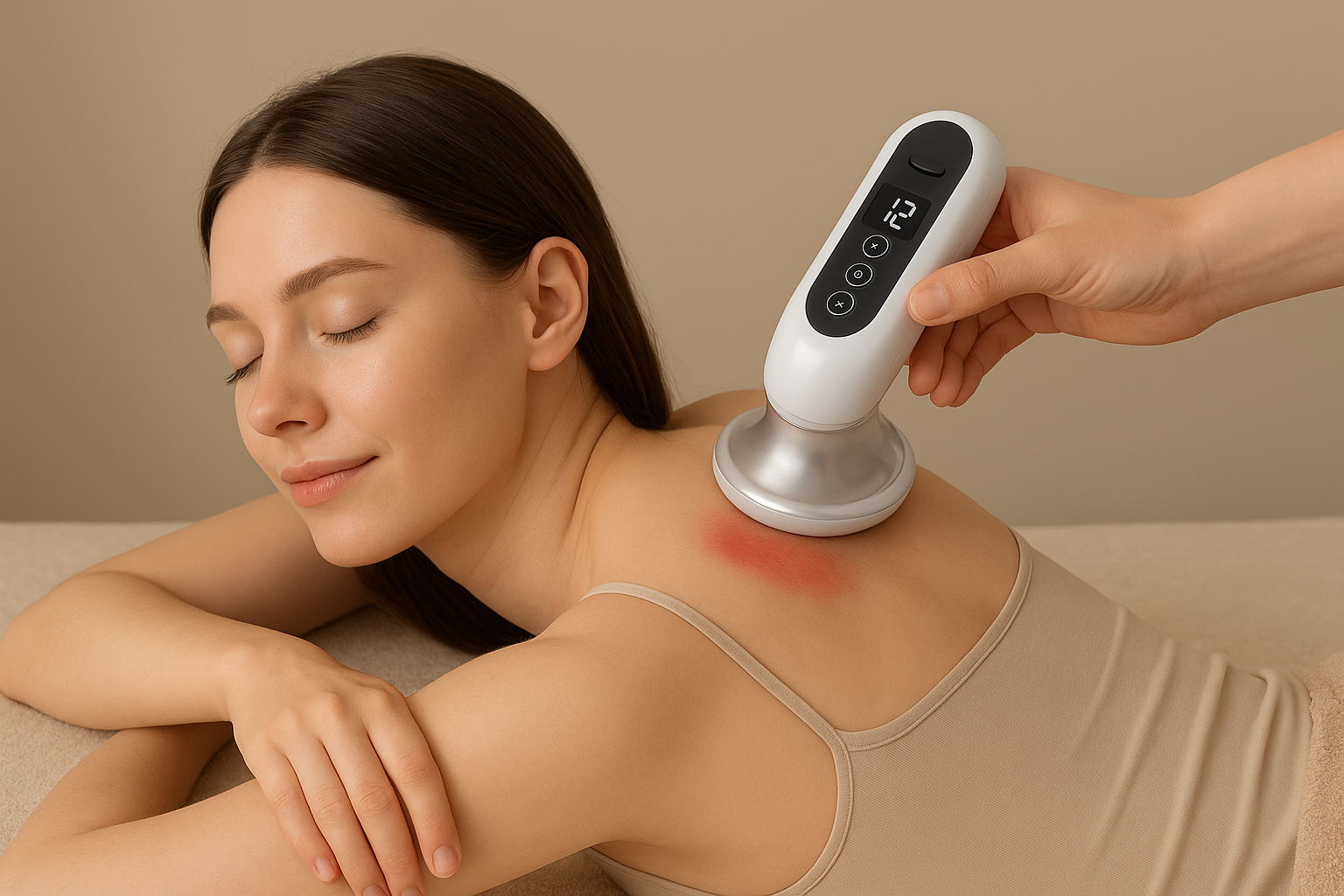 Rahatlatıcı Masaj: Gua Sha + negatif basınçlı vakumla kas ağrılarını hafifletir.